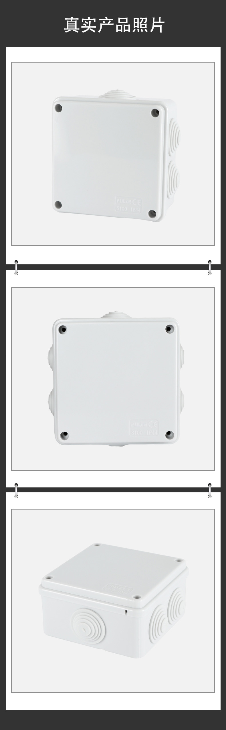 尺寸:100×100×50(mm)多重密封/安全防水 防水IP等級 (IP44)可供選材料(常ABS)ABS阻燃、PC,合金材PC阻燃安全可靠/耐高溫/耐電/壽命長每一個部分都是精心挑選的,只是為了打造一個好的產(chǎn)品