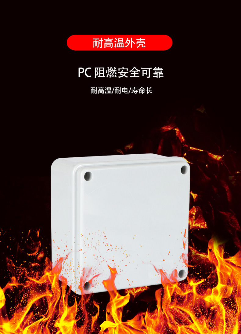 多重密封/安全防水 防水IP等級 (IP44)可供選材料(常ABS)ABS阻燃、PC,合金材PC阻燃安全可靠/耐高溫/耐電/壽命長每一個(gè)部分都是精心挑選的,只是為了打造一個(gè)好的產(chǎn)品">