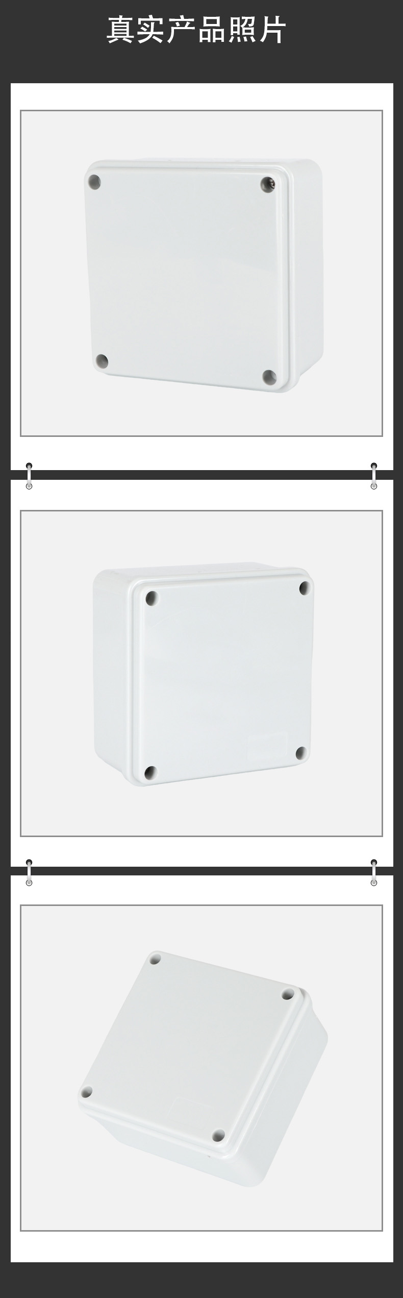 尺寸:100×100×50(mm)多重密封/安全防水 防水IP等級 (IP44)可供選材料(常ABS)ABS阻燃、PC,合金材PC阻燃安全可靠/耐高溫/耐電/壽命長每一個(gè)部分都是精心挑選的,只是為了打造一個(gè)好的產(chǎn)品
