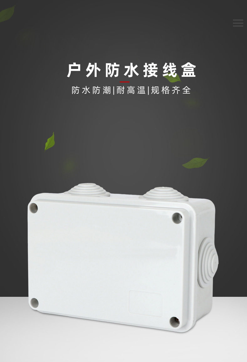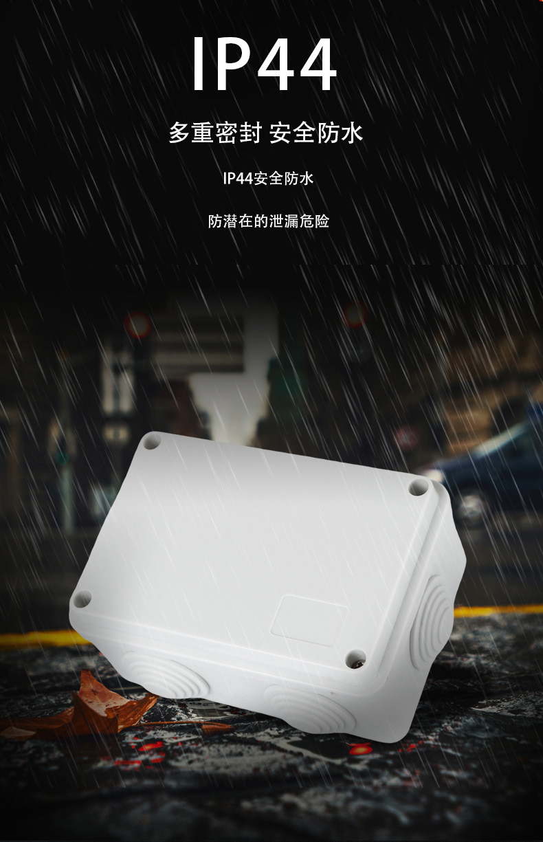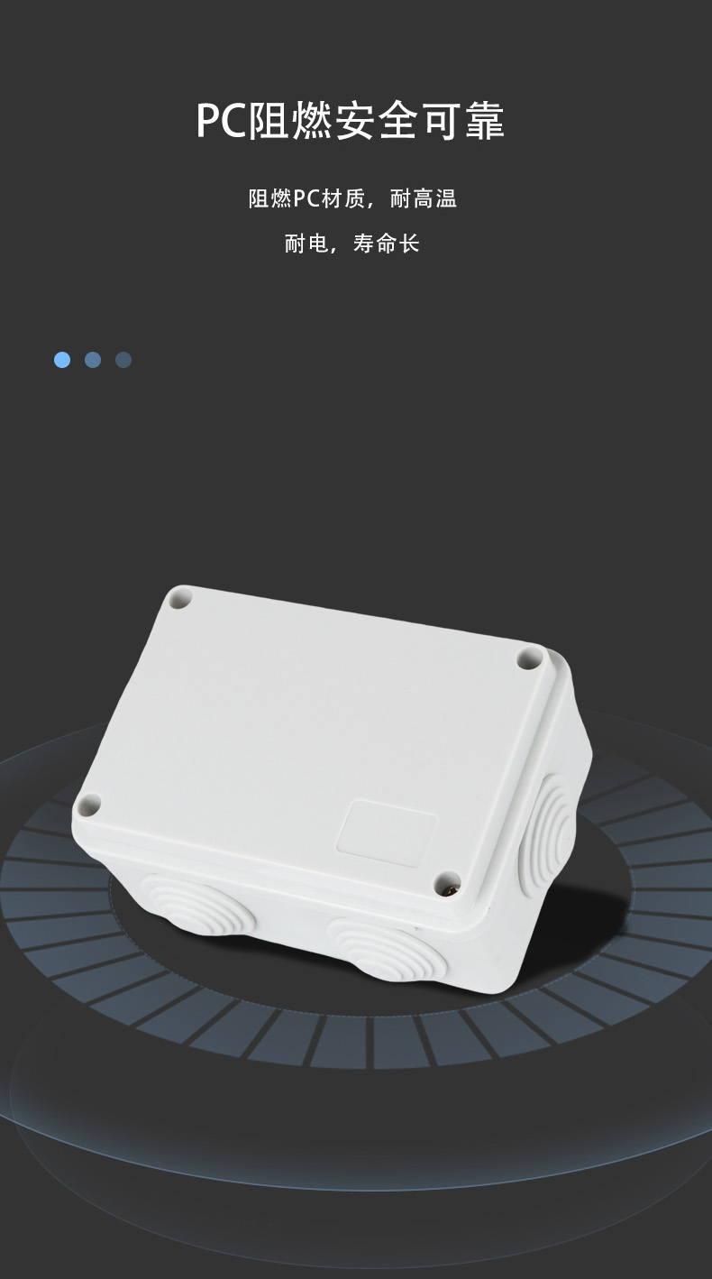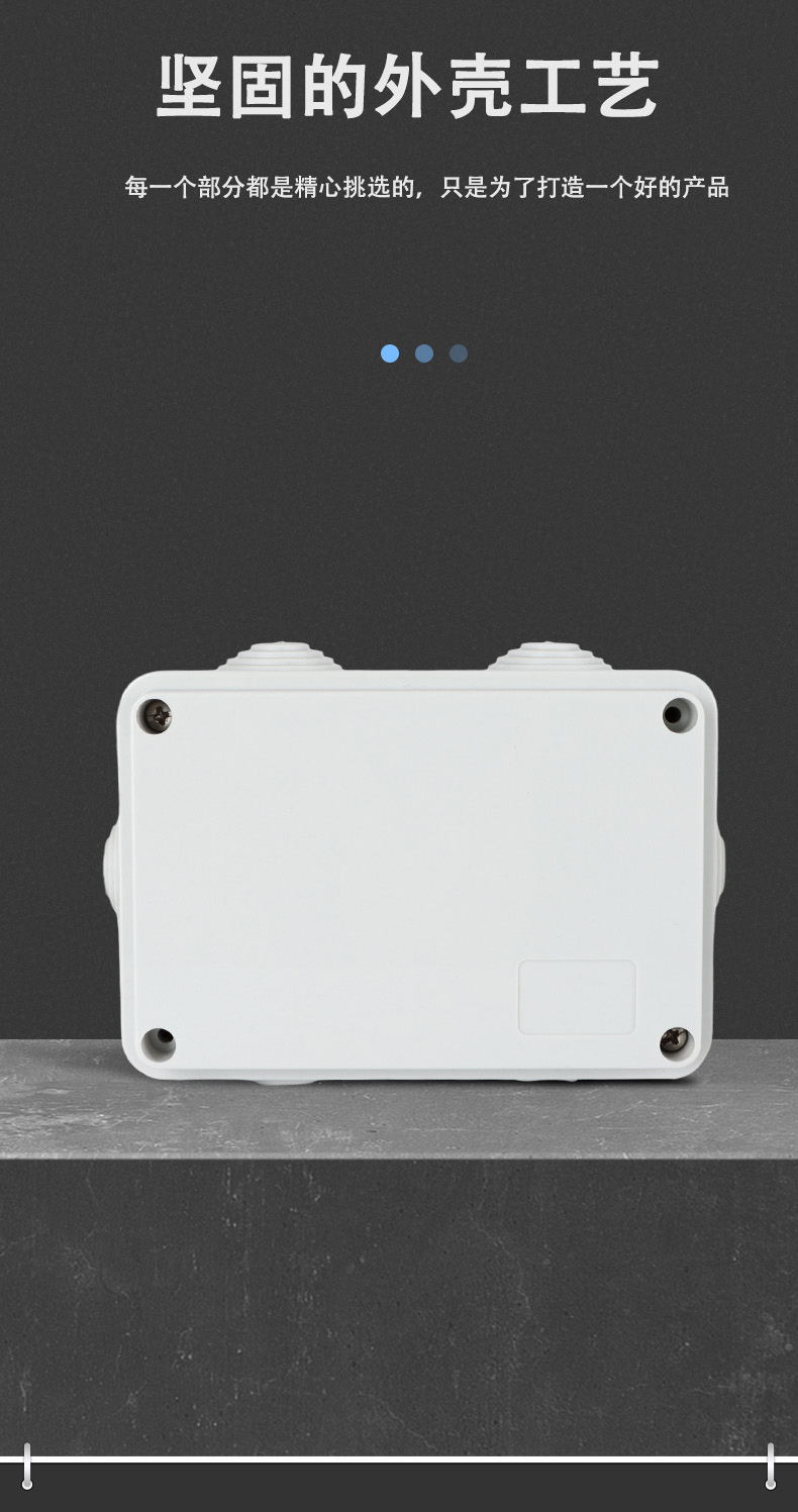 尺寸:120×80×50(mm)多重密封/安全防水 防水IP等級 (IP44)可供選材料(常ABS)ABS阻燃、PC,合金材PC阻燃安全可靠/耐高溫/耐電/壽命長每一個部分都是精心挑選的,只是為了打造一個好的產(chǎn)品