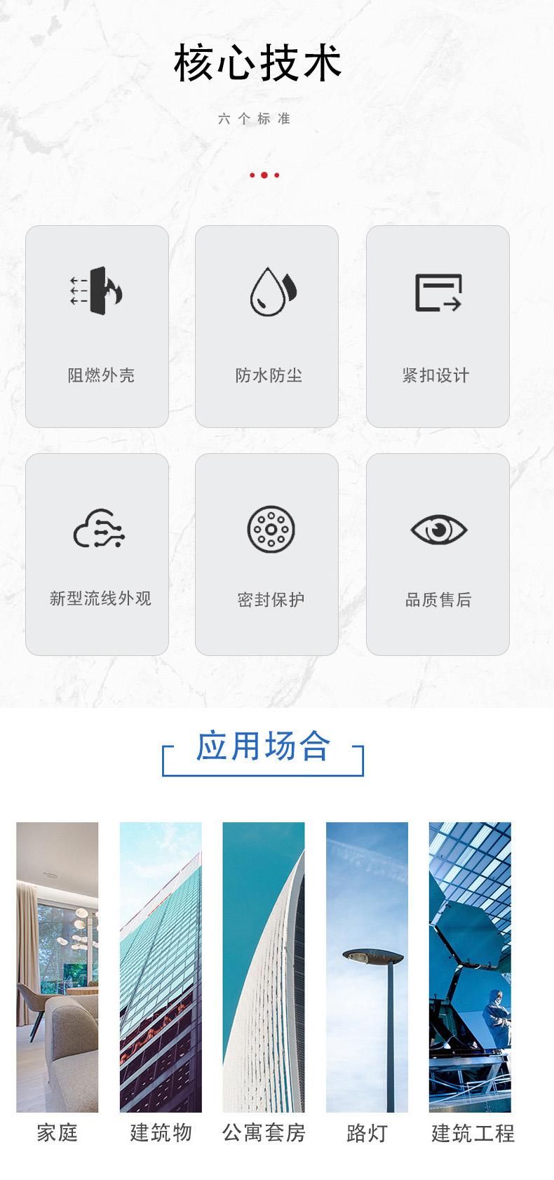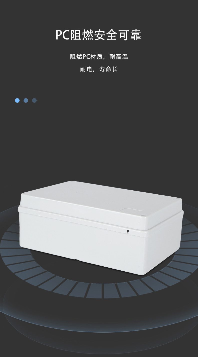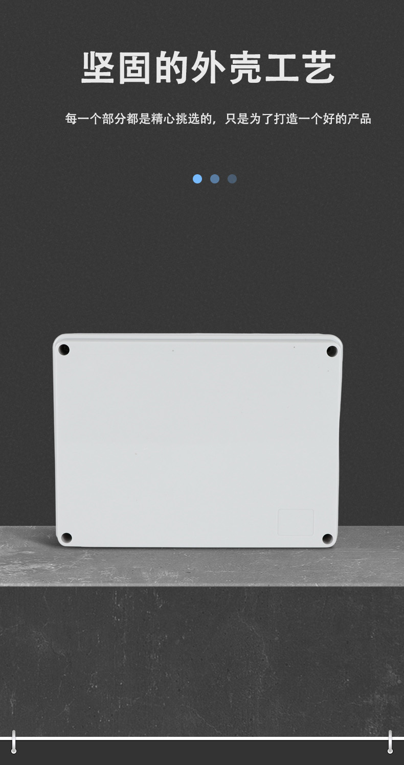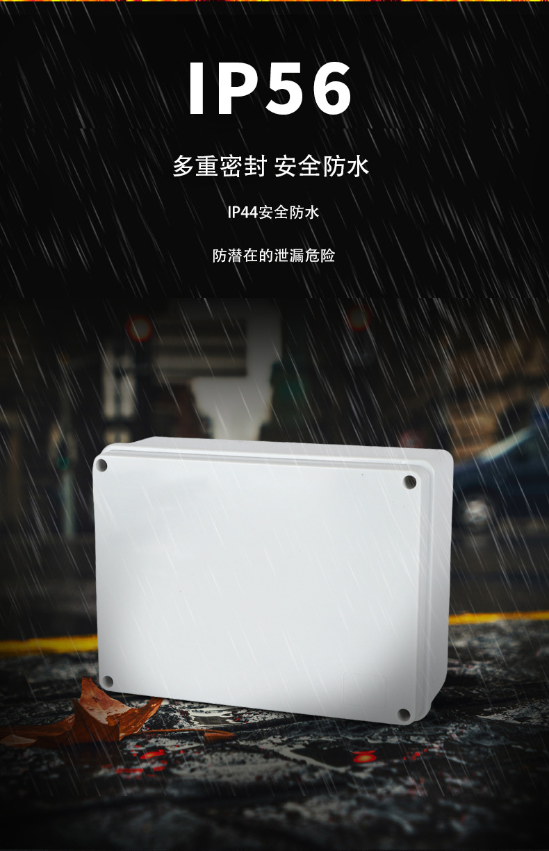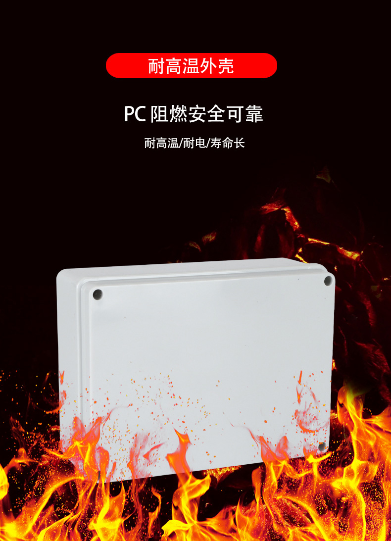 多重密封/安全防水 防水IP等級 (IP44)可供選材料(常ABS)ABS阻燃、PC,合金材PC阻燃安全可靠/耐高溫/耐電/壽命長每一個(gè)部分都是精心挑選的,只是為了打造一個(gè)好的產(chǎn)品